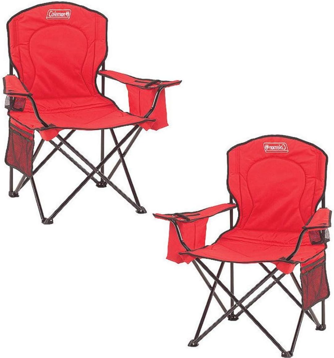 Coleman Portable Camping Quad Chair With 4 Can Cooler 2 Set Red