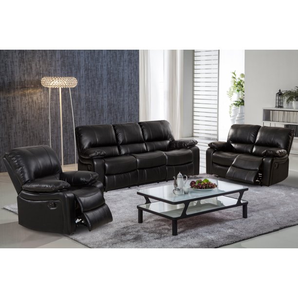 Evelyn 3 Pc Black Leather Gel Reclining Sofa Set With Rocking Chair Walmart Com Walmart Com