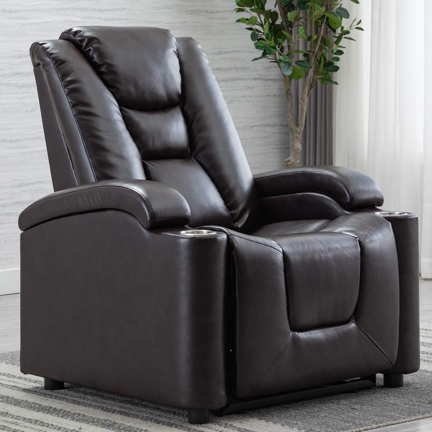 Amazon Com Canmov Electric Power Recliner Chair With Adjustable Headrest And Cup Holders Breathable Bonded Leather Home Theater Seating With Usb Ports Brown Kitchen Dining