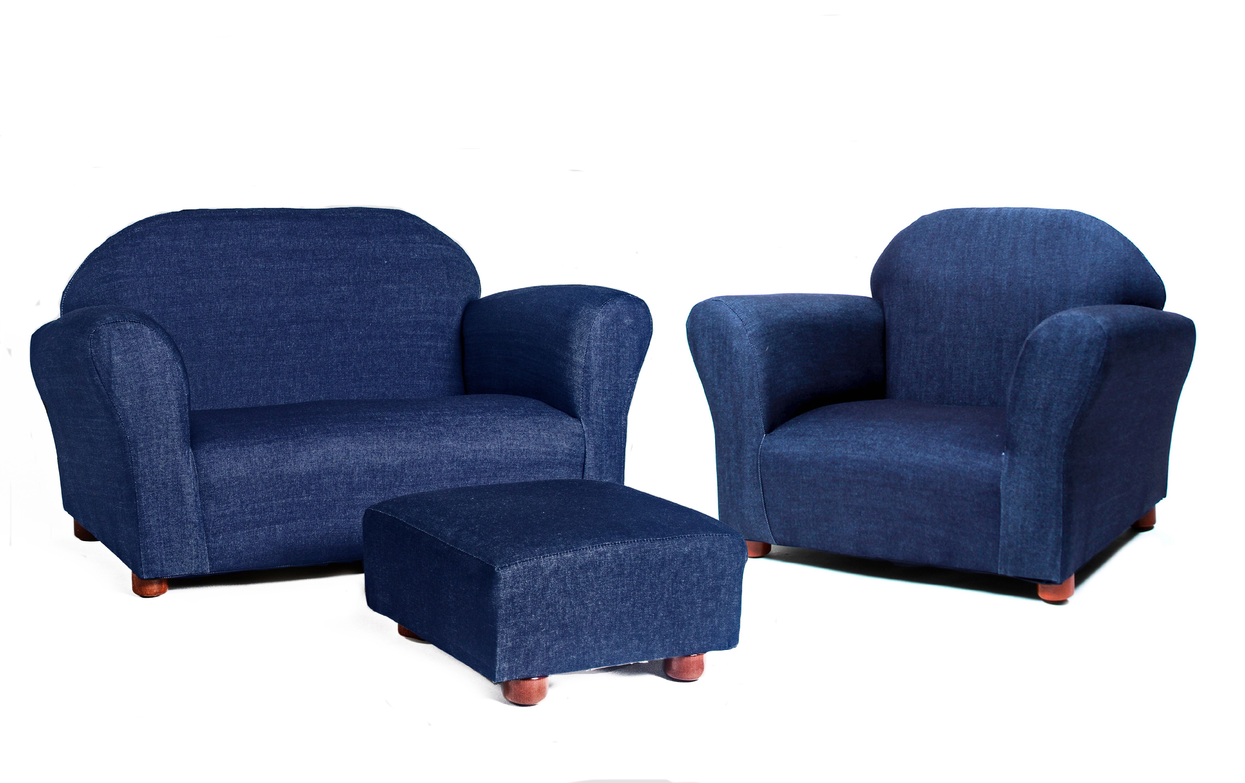 Keet Roundy Denim Children S Chair Sofa And Ottoman Set Denim